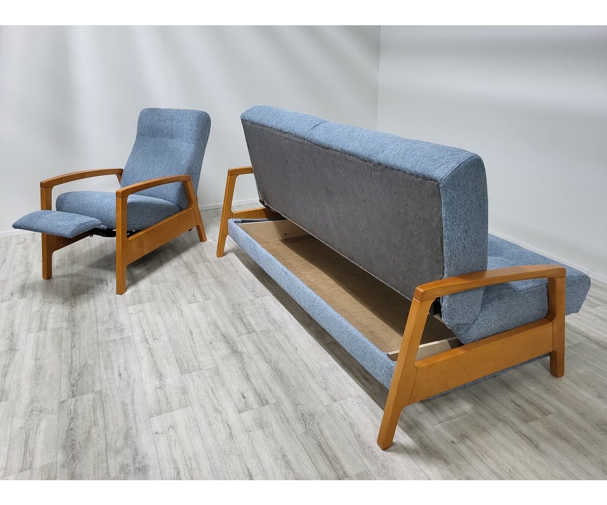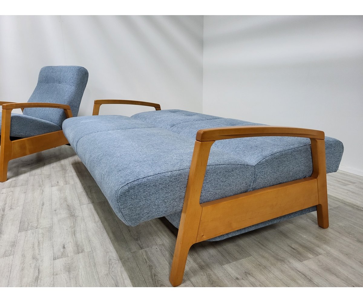 Uvedená cena představuje rozkládací pohovku bez čalounění zad a relax křeslo.