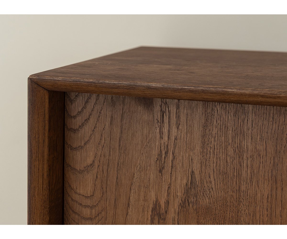 Je vyrobena z masivního dubového dřeva v teplém odstínu tabák, který zvýrazňuje přirozenou kresbu dřeva a dodává nábytku jedinečný charakter.