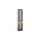 Vitrína je vybavena jedněmi dvířky se sklem, které umožňují přehledné vystavení uložených předmětů. Celek doplňují kovové úchytky v černosivém matném provedení, podtrhující industriální charakter nábytku.